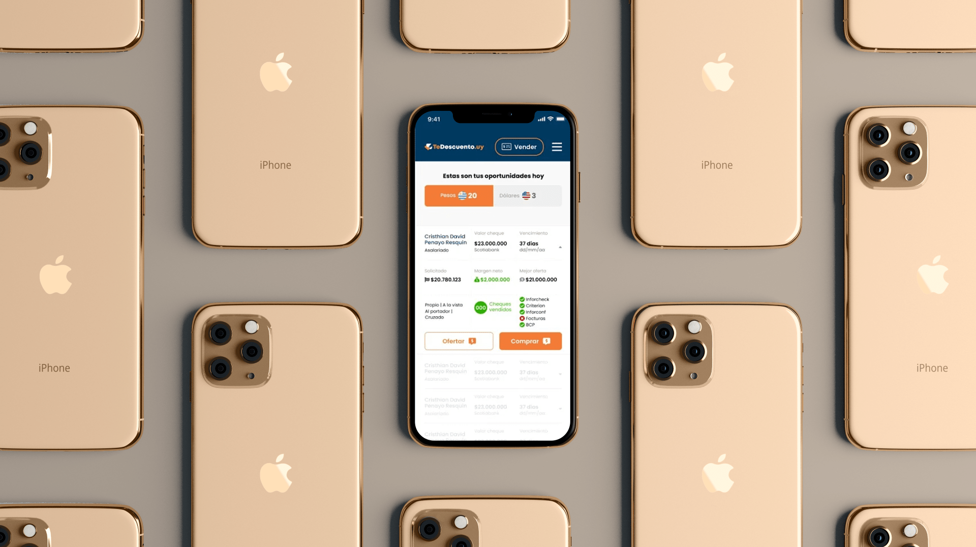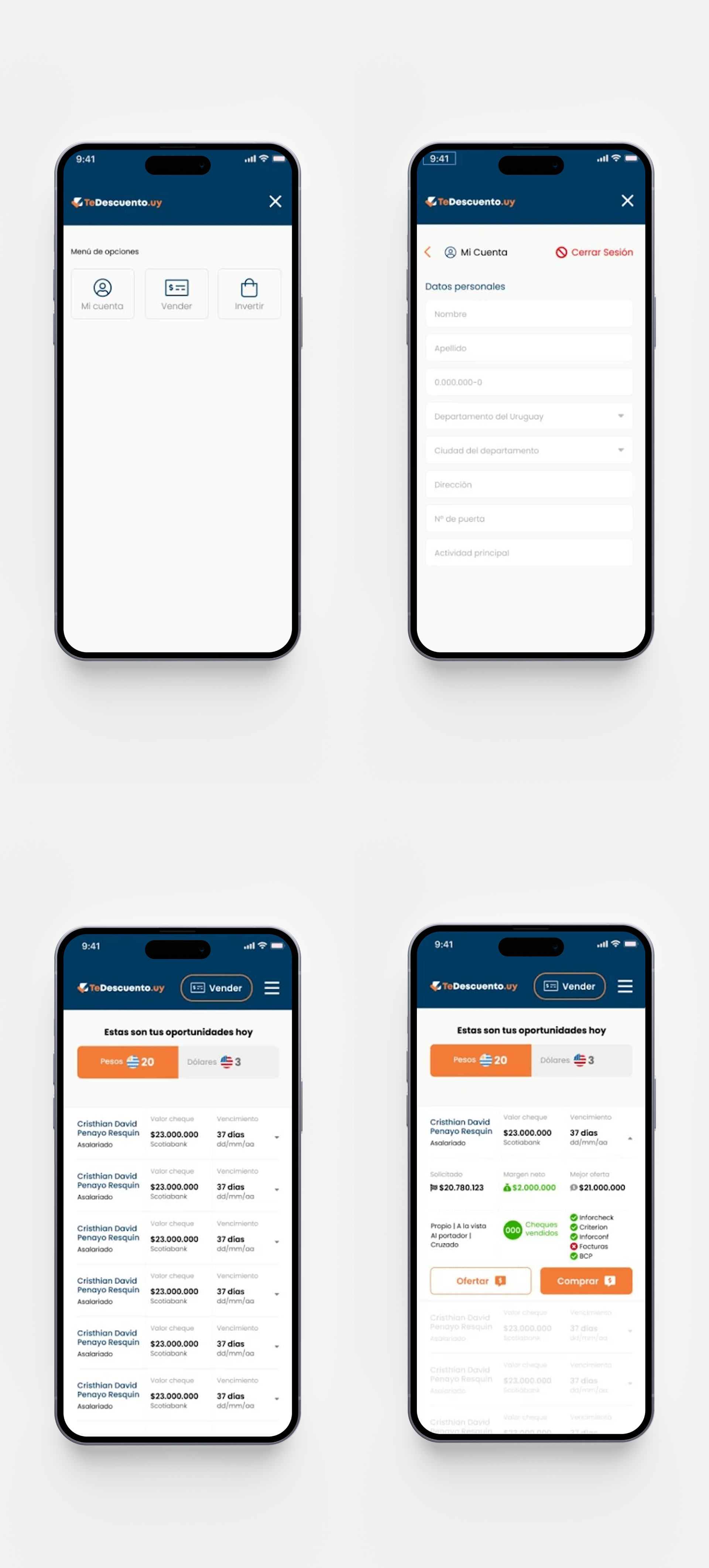 Desarrollamos una app en React Native para vender cheques, conectando empresas en Paraguay, Uruguay y Argentina, facilitando transacciones financieras.